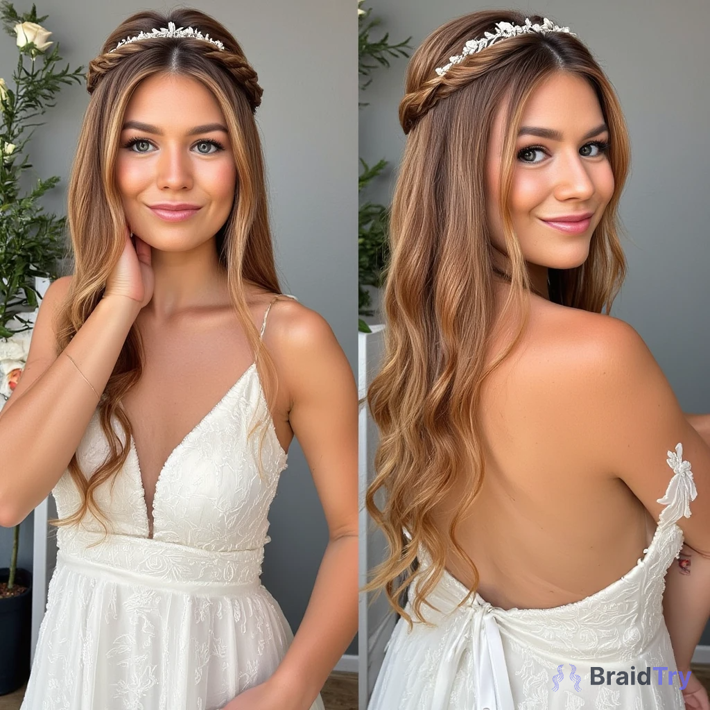Our AI technology shows you how the half up, half down style would look on real people. Preview your transformation in seconds before your special day.