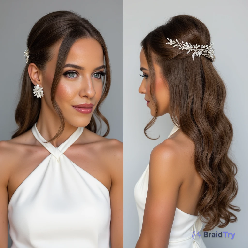 Half up half down wedding hair is consistently ranked as one of the most sought-after bridal hairstyles. This versatile wedding day hairstyle combines the elegance of an updo with flowing locks, perfect for both traditional and modern brides. Professional bridal stylists recommend this romantic wedding hairstyle for its ability to work with all hair types and lengths.
